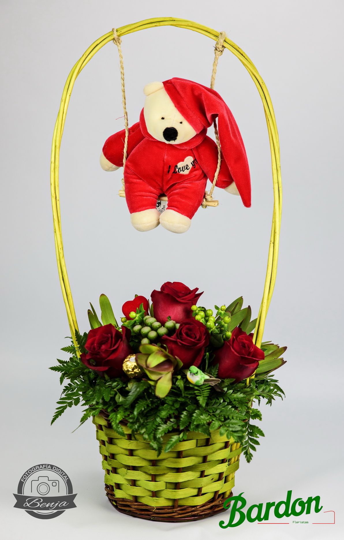 Columpio Con Peluche y Rosas