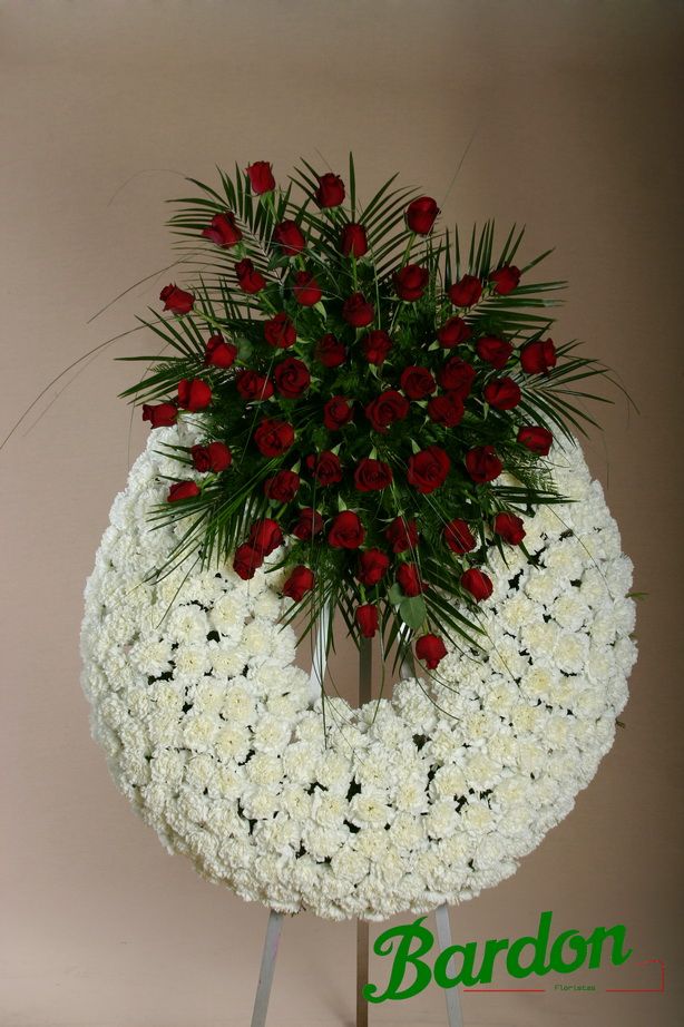 Corona de Rosas Rojas y Clavel Blanco