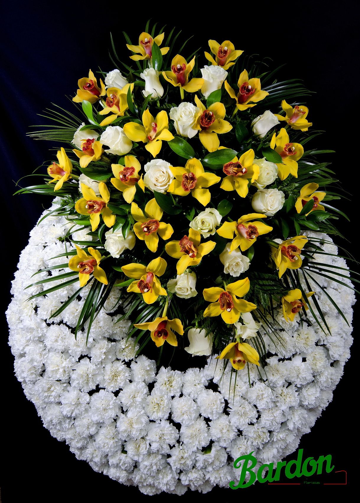 Corona compuesta de Orquideas, Rosas y Clavel