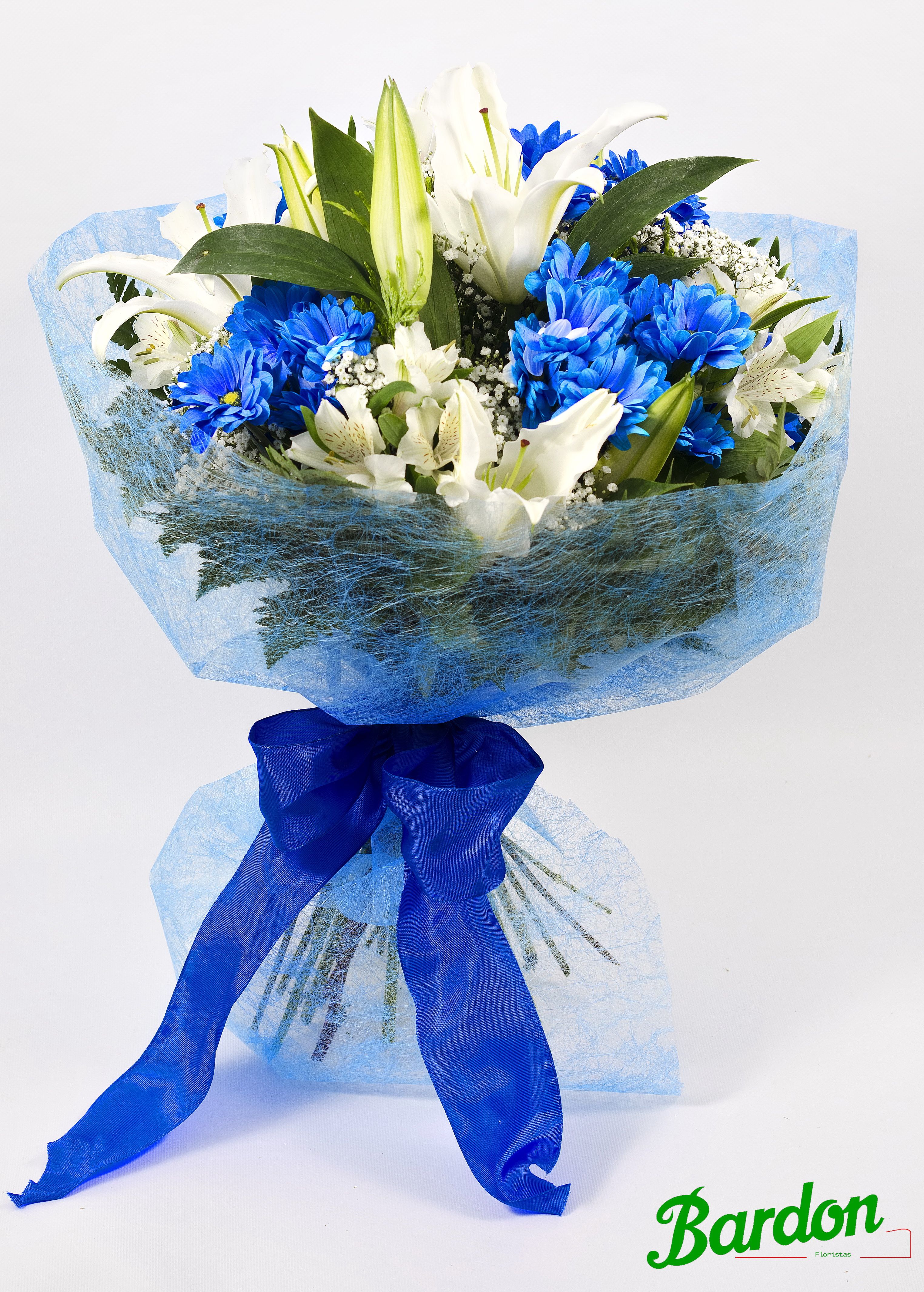 Ramo compuesto de flores azules (teñidas) y blancas