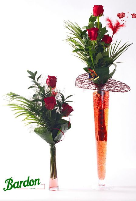 Rosas en violetero de cristal
